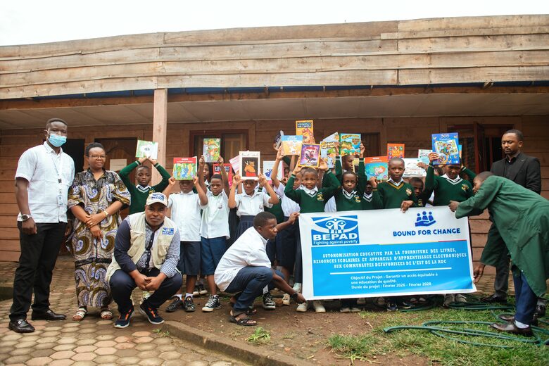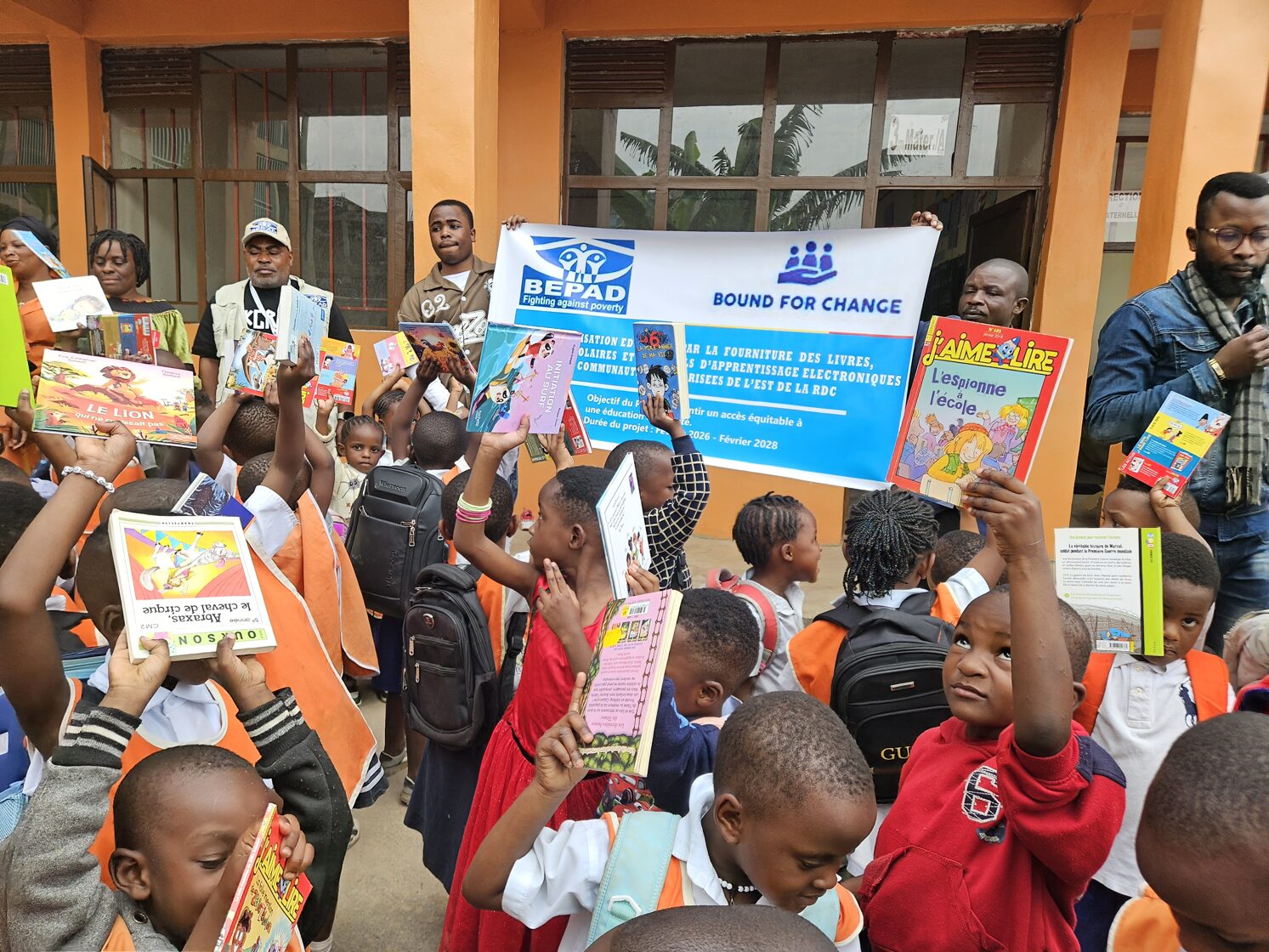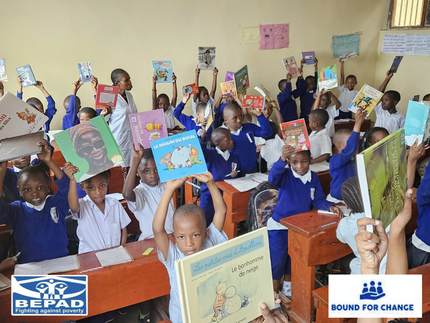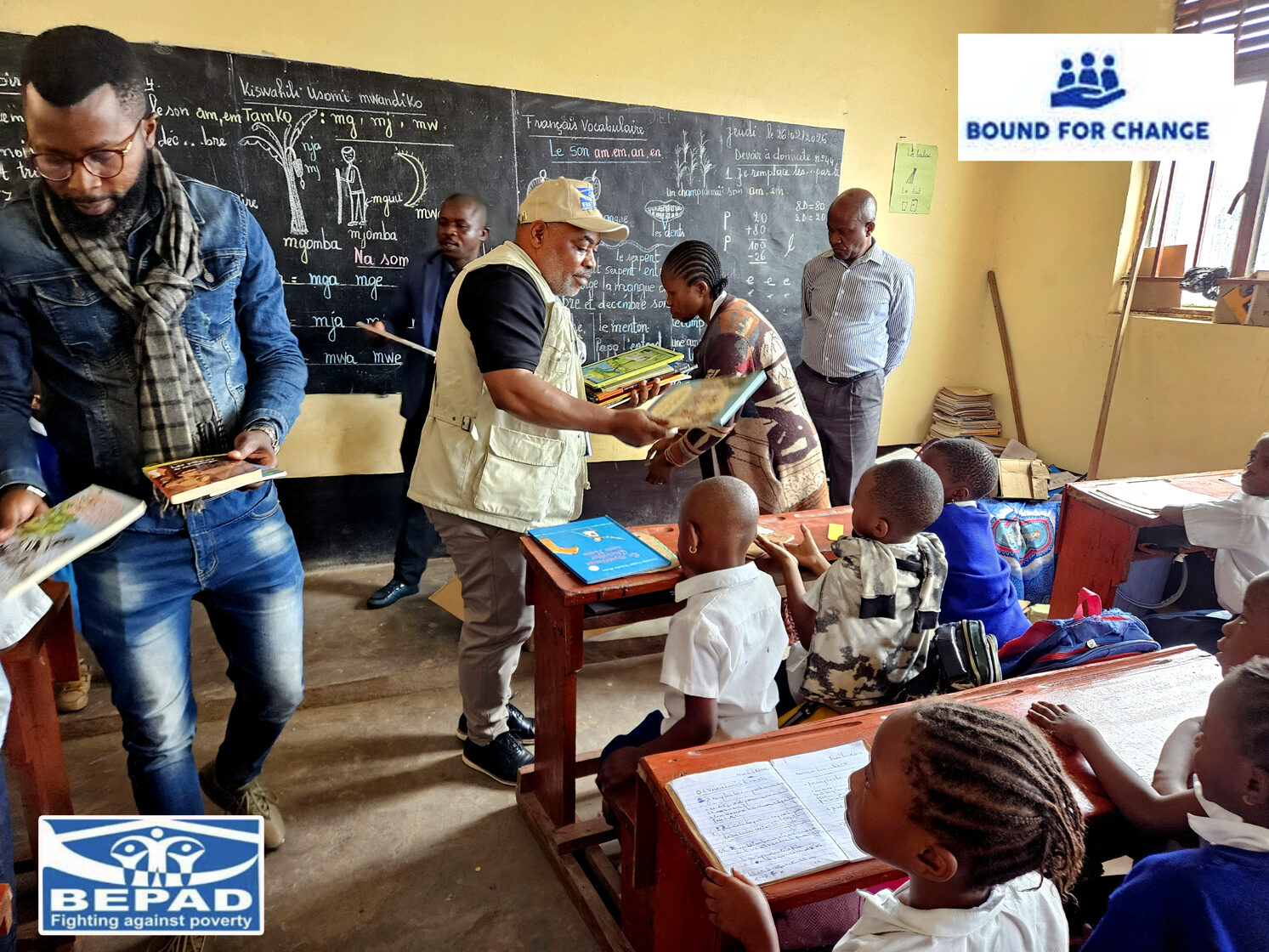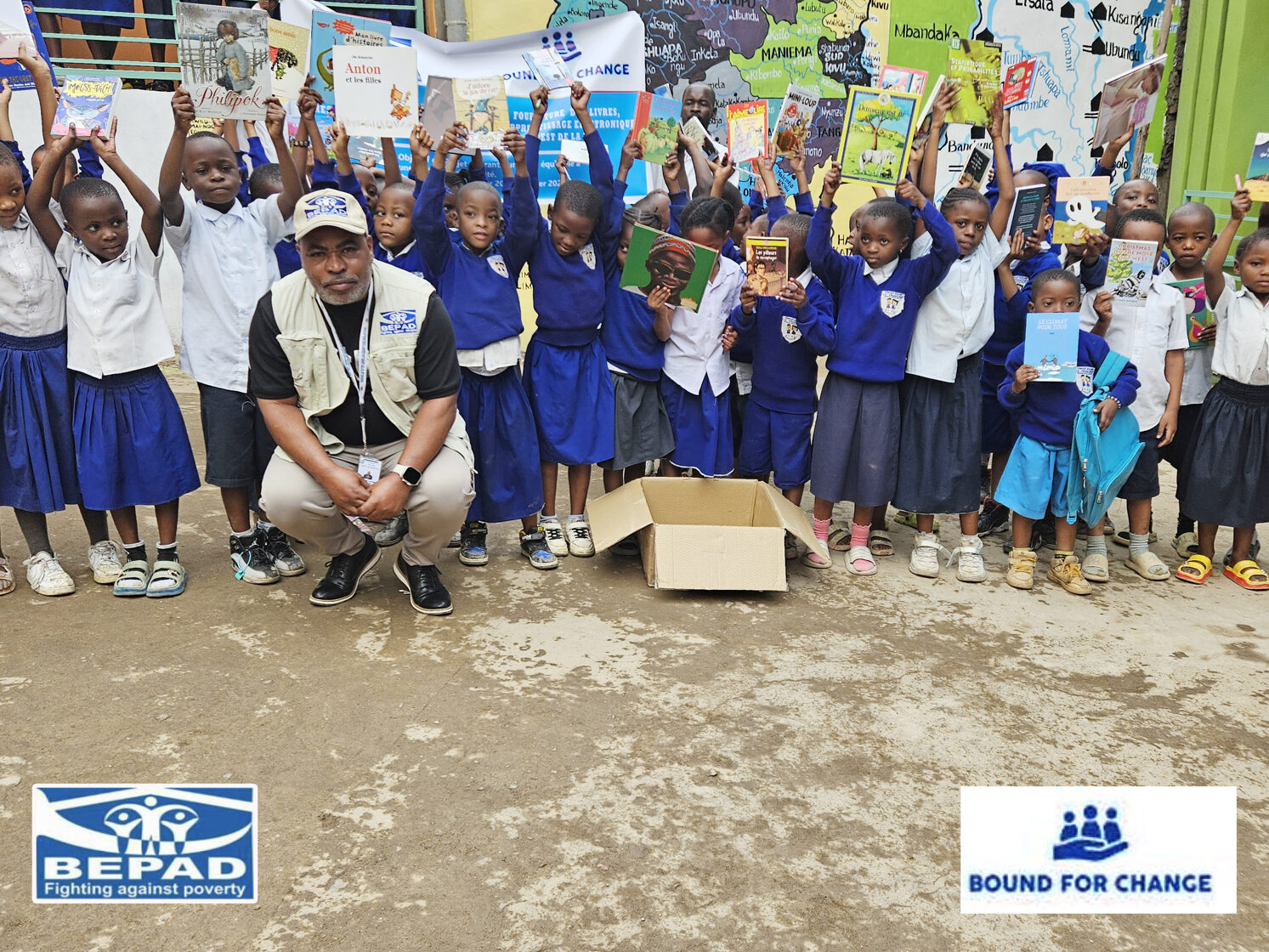 Avec Bound for Change, un projet dans le domaine de l'Education est mis en oeuvre par BEPAD au Sud-Kivu, RDC, ville de Bukavu. Titre du projet : "Educational Empowerment through Books and Scholastic Resources–France". The goal of this initiative is to provide essential educational materials, including books, school supplies, and electronic learning devices, to underserved communities in Democratic Republic of Congo, ensuring equitable access to quality education. Ci-dessous les photos de la distribution des livres dans les écoles.